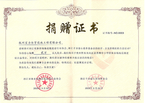 一片塑膠球場,一段塑膠跑道,這是一種情懷,這是一種愛,塑膠球場建設單位寶力體育為貴州秀塘壯族鄉小學體育設施建設捐贈2萬元。