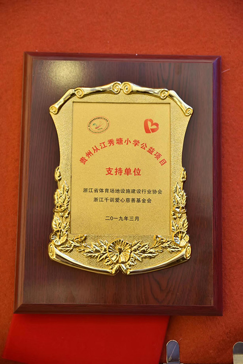 一片塑膠球場,一段塑膠跑道,這是一種情懷,這是一種愛,塑膠球場建設單位寶力體育為貴州秀塘壯族鄉小學體育設施建設捐贈2萬元。