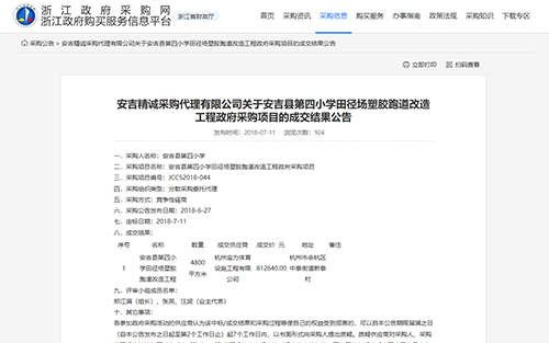 2018年7月11號中標安吉縣第四小學田徑場塑膠跑道改造工程項目
