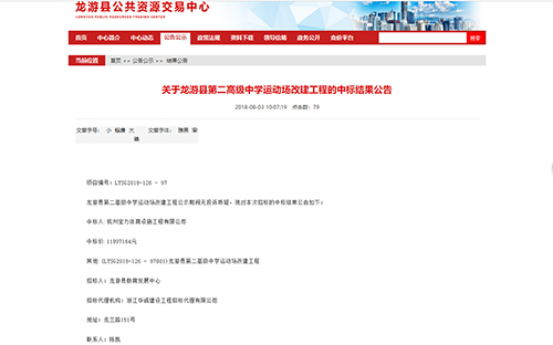 2018年8月3日中標龍游縣第二高級中學塑膠運動場改建工程公告