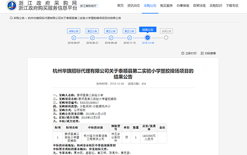 2018年12月6日中標泰順縣第二實驗小學塑膠操場建設項目公告