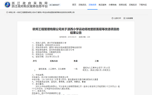 2018年6月1日中標漾西小學運動場地塑膠面層改造項目公告