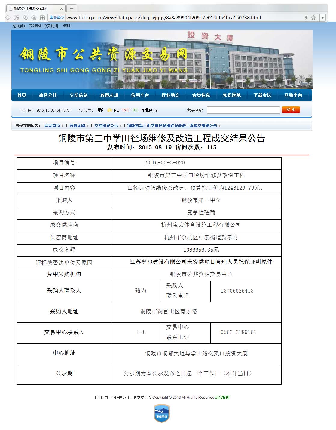 上一篇:2015年3月26日中標徽州區西溪南鎮中心學校室外塑膠場地工程中標公示-中國政府采購招標網